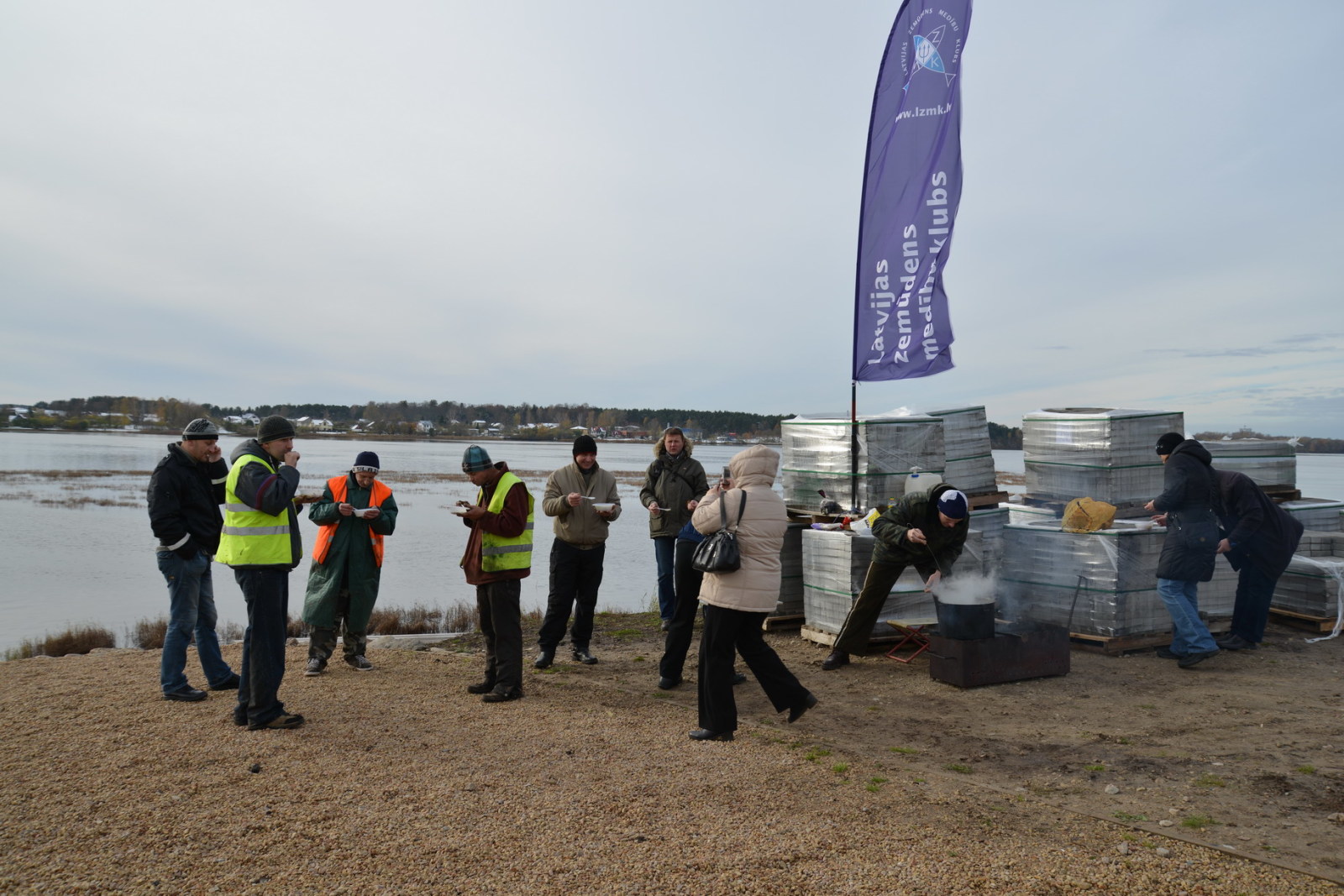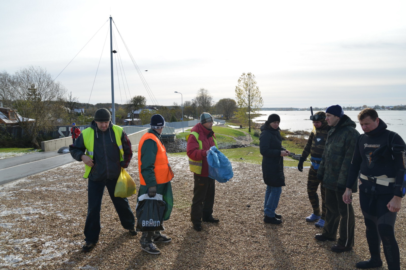 - Сочувствующие - с пакетами по берегу